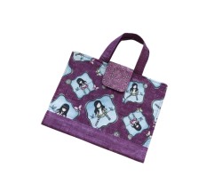Uvnitř na pravé straně je velká kapsa na blok velikosti A4, na levé straně jsou přihrádky na 14 pastelek, kryt na špičky pastelek a kapsička na drobnosti (cca 16,5 x 16,5 cm).