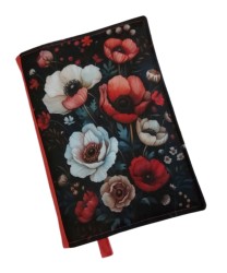 Výška obalu cca 23,5 cm. Je vhodný na knihu o výšce 22 cm (prošití na okraji použitelnou část o něco zmenší). Šířka nastavitelná i na silnější knihy, lze fixovat všitou gumičkou.