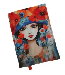 Nastavitelný obal na knihu klasické výšky ušitý ze 100% bavlněných látek - přední strana panel s obrázkem, zadní strana kvalitní zahraniční bavlněná látka v ladící sytě oranžové barvě, vnitřek česká bavlna s režným efektem. Všitá záložka. Klopa vyztužená vlizelínem, celý obal je podložený měkkou výztuhou.